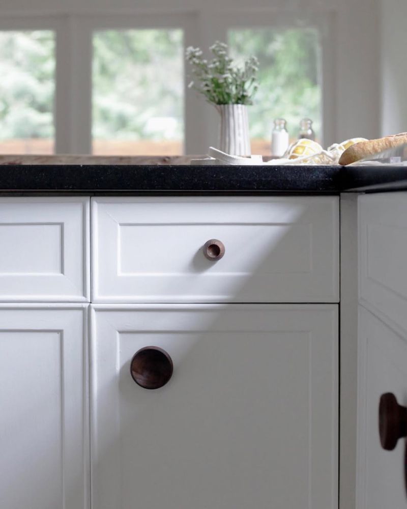 There’s a quiet beauty to natural wood knobs. Whether raw, stained, or lightly lacquered, wood hardware adds warmth and a grounded feeling to any kitchen. Use it to soften painted cabinetry or enhance a tone-on-tone wood look.