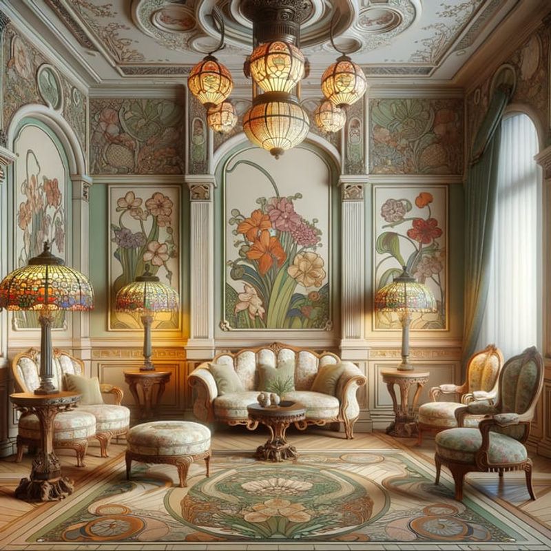 Art Nouveau bends like a vine, chasing the rhythm of leaves and flowers. It draws from the natural world, enveloping spaces with flowing forms.