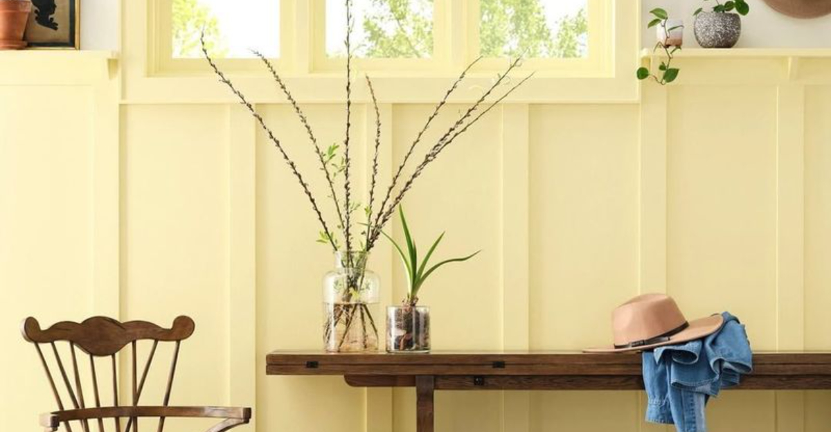 Soft yellow walls in a dining room evoke warmth and joy, enhancing meal times. This color is inviting and cheerful, perfect for gathering spaces.