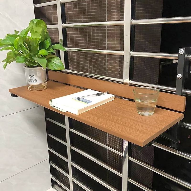 Build a custom-fit tabletop that hooks over your railing, creating an instant workspace or dining spot without consuming floor space. Use marine-grade wood or treated lumber for weather resistance.